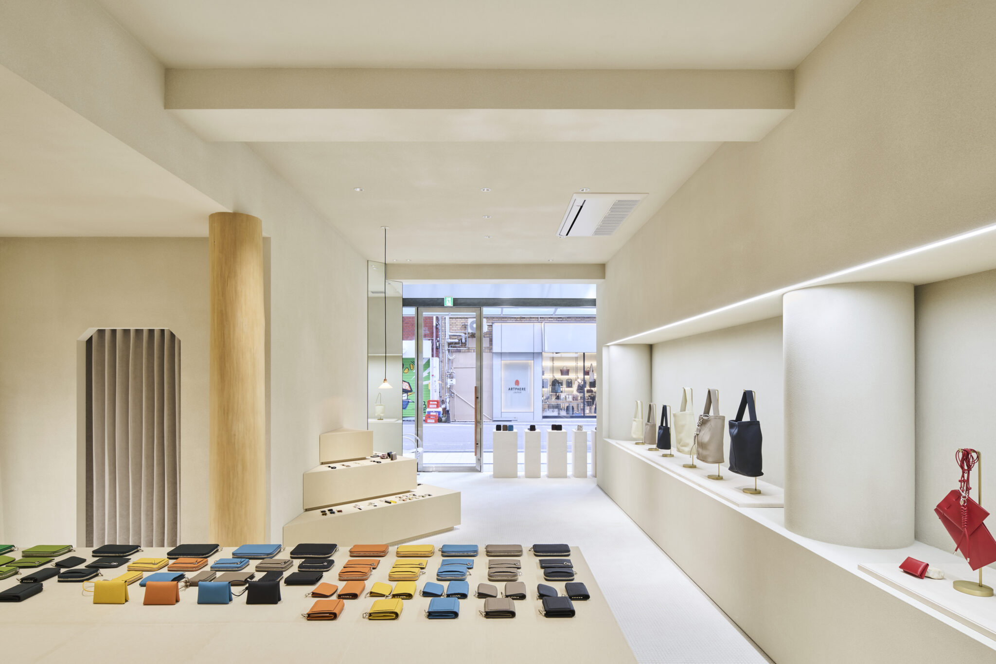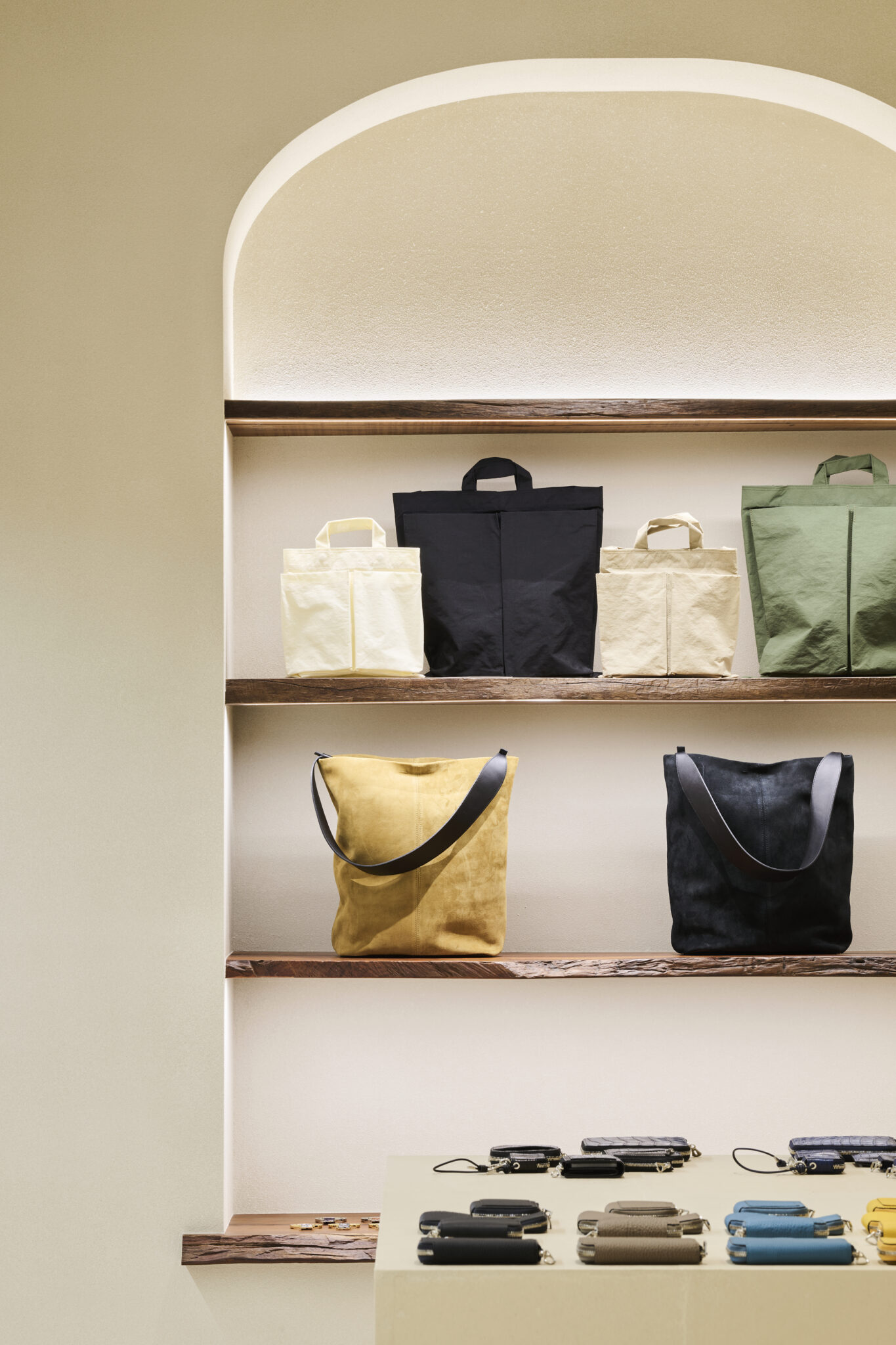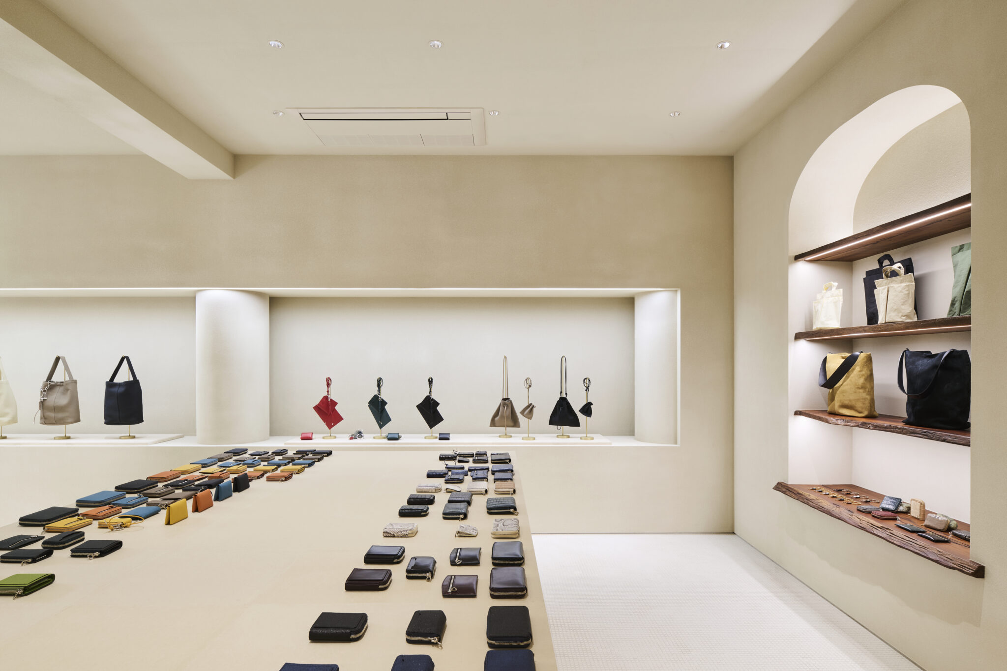 国内外の伝統ある素材を使い、シンプルで革新的なデザインの財布・バッグ・革小物を展開するITTI OSAKAのインテリアデザインである。