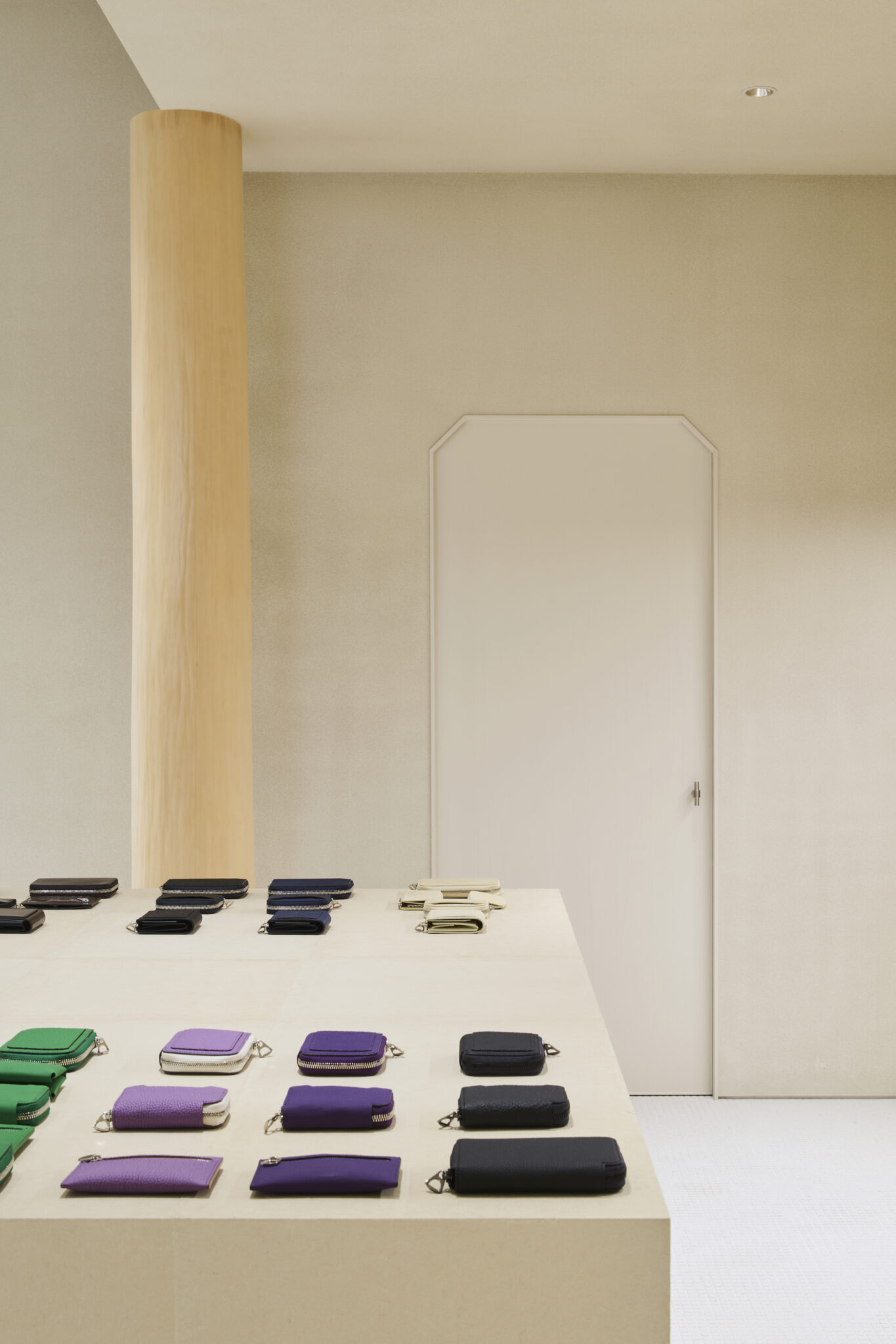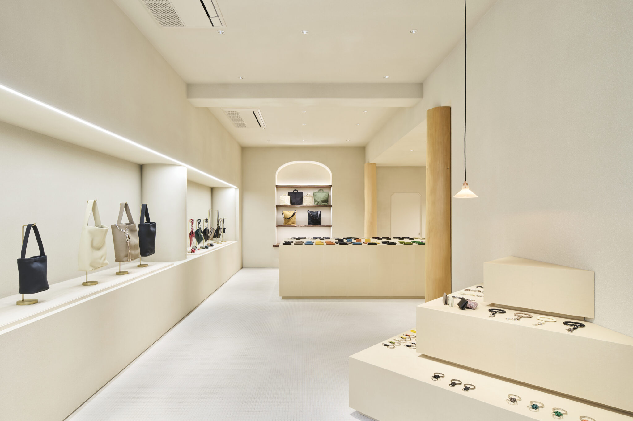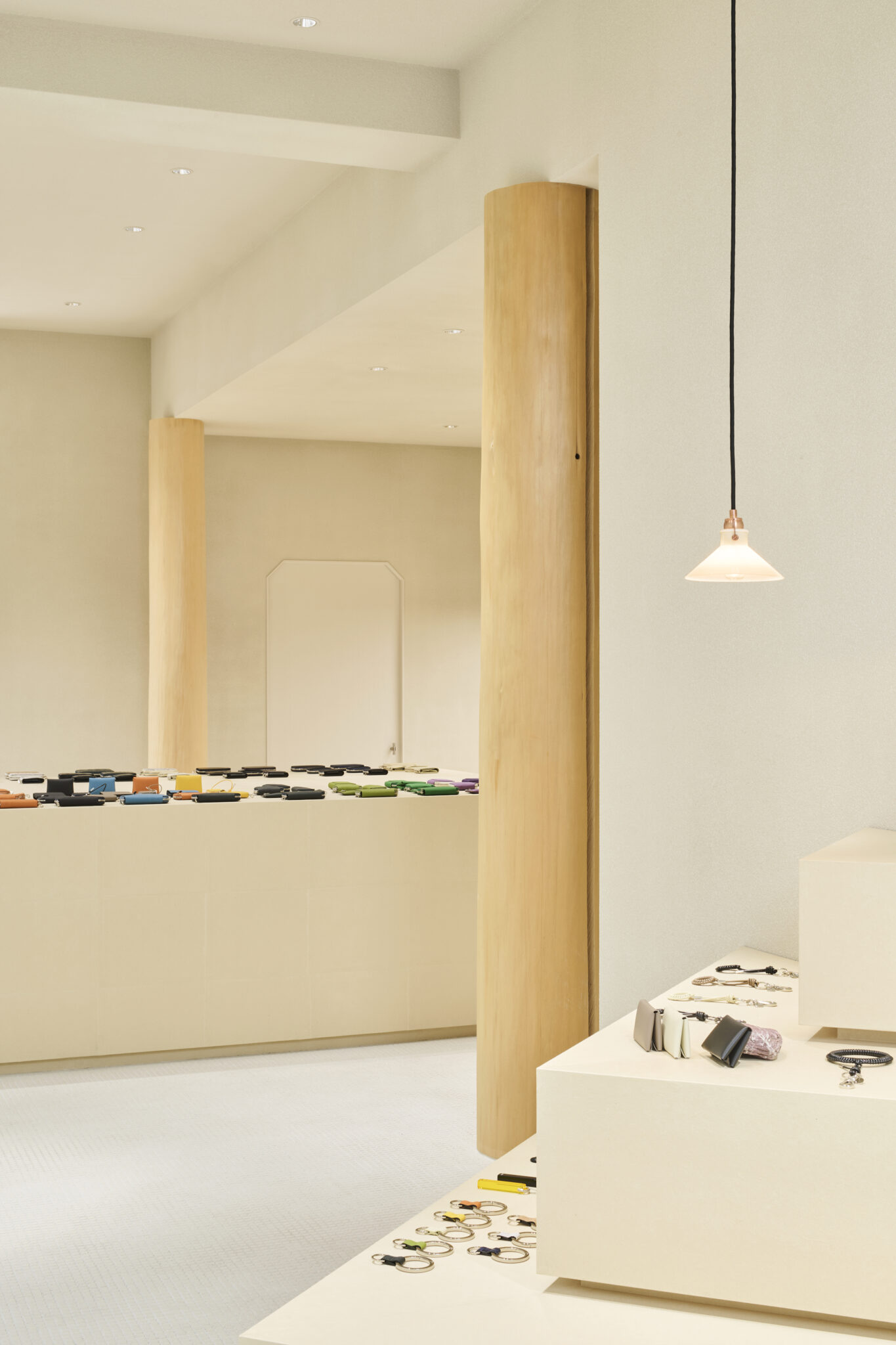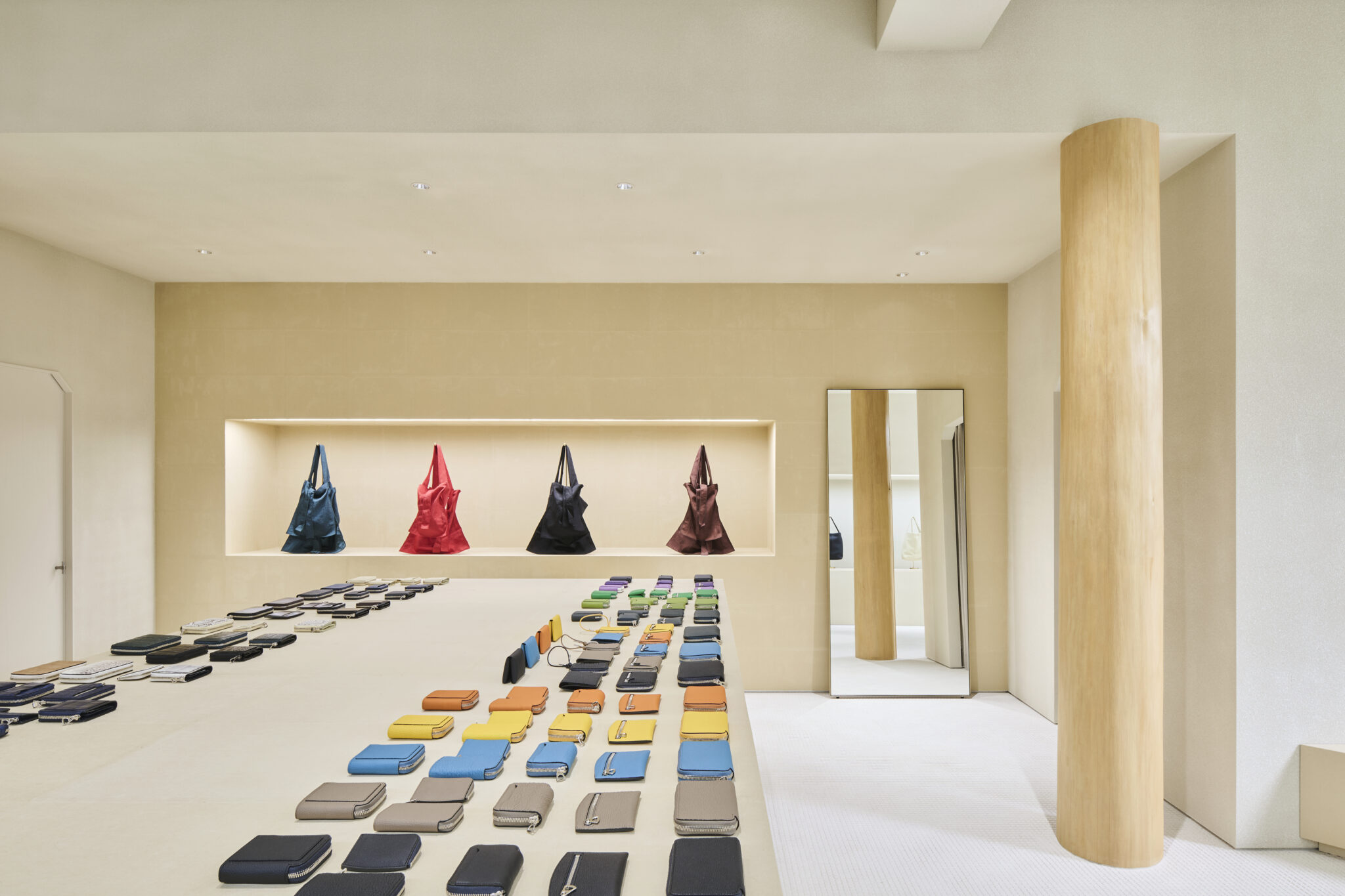国内外の伝統ある素材を使い、シンプルで革新的なデザインの財布・バッグ・革小物を展開するITTI OSAKAのインテリアデザインである。